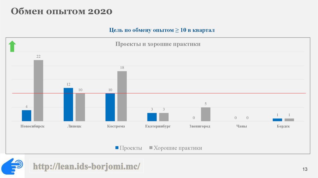 Обмен опытом 2020Цель по обмену опытом ≥ 10 в квартал