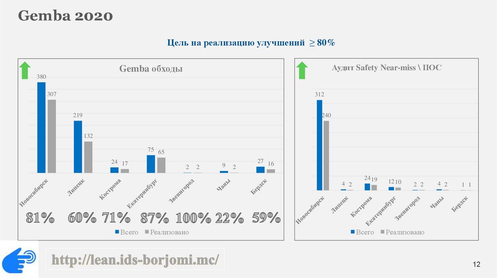 Gemba 2020Цель на реализацию улучшений ≥ 80%