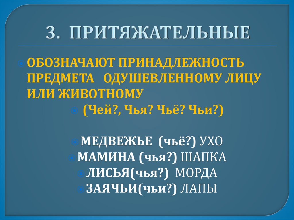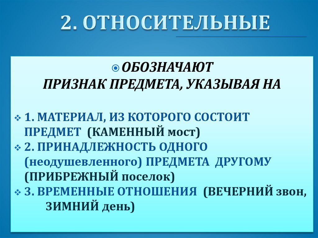 ОБОЗНАЧАЮТПРИЗНАК ПРЕДМЕТА, УКАЗЫВАЯ НА