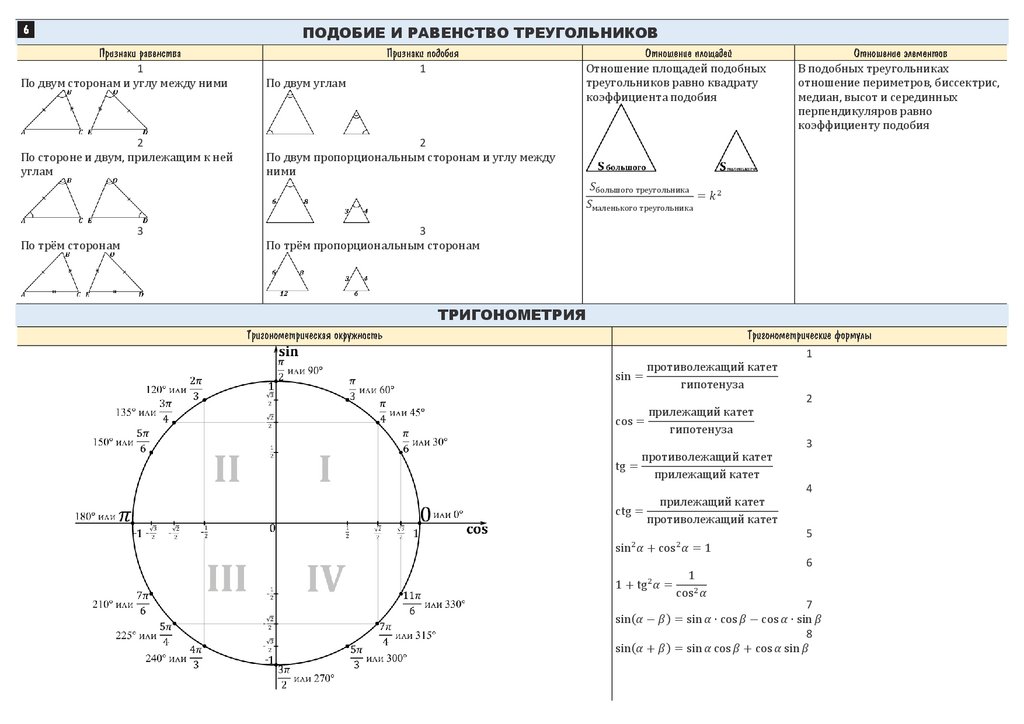 Тригонометрия. Справочные материалы