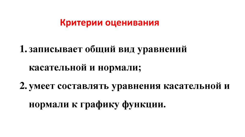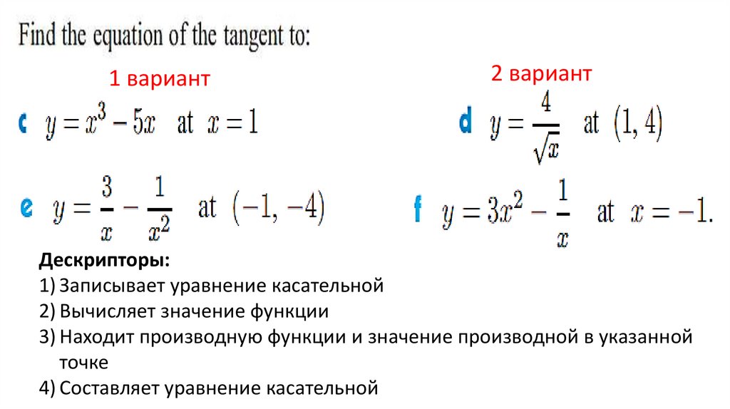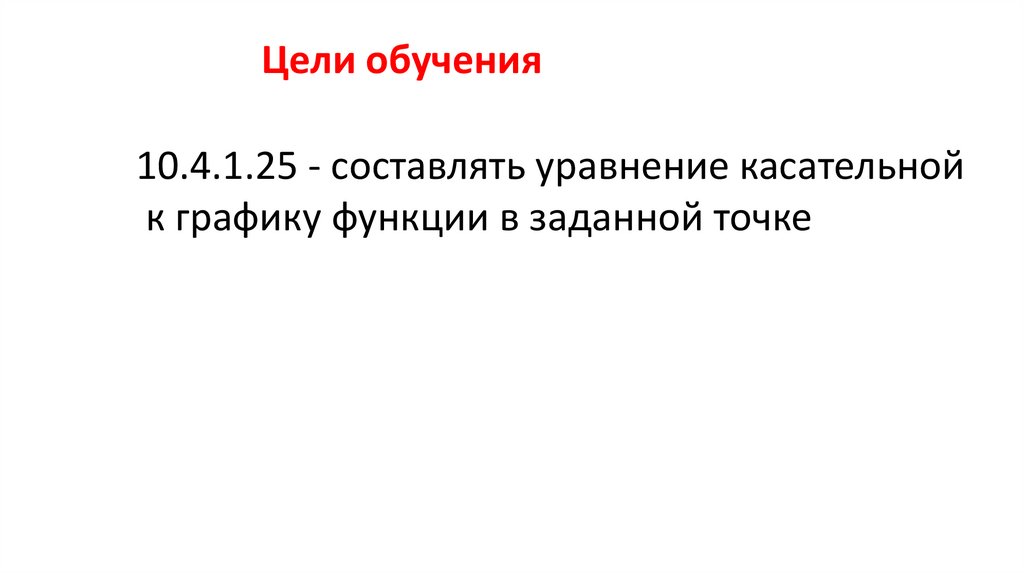 Цели обучения10.4.1.25 - составлять уравнение касательной