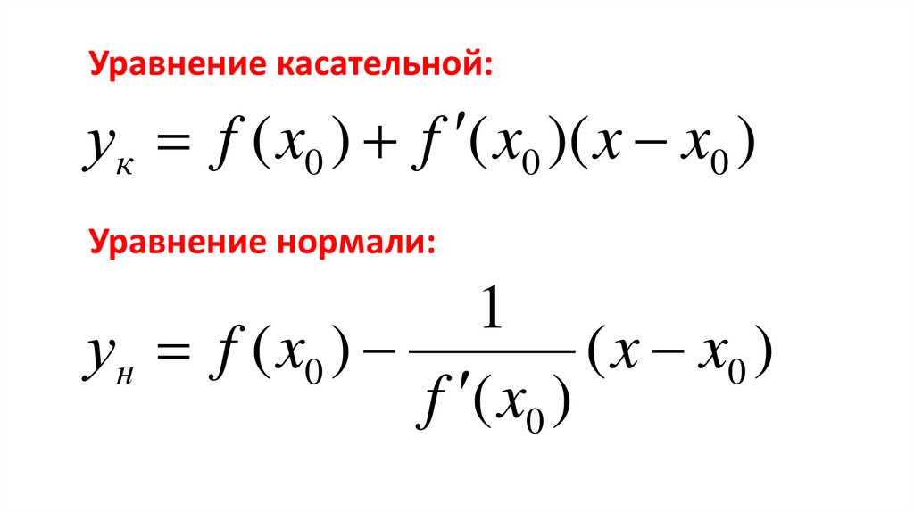 Уравнение касательной:ук f ( x0 ) f ( x0 )( x x0 )