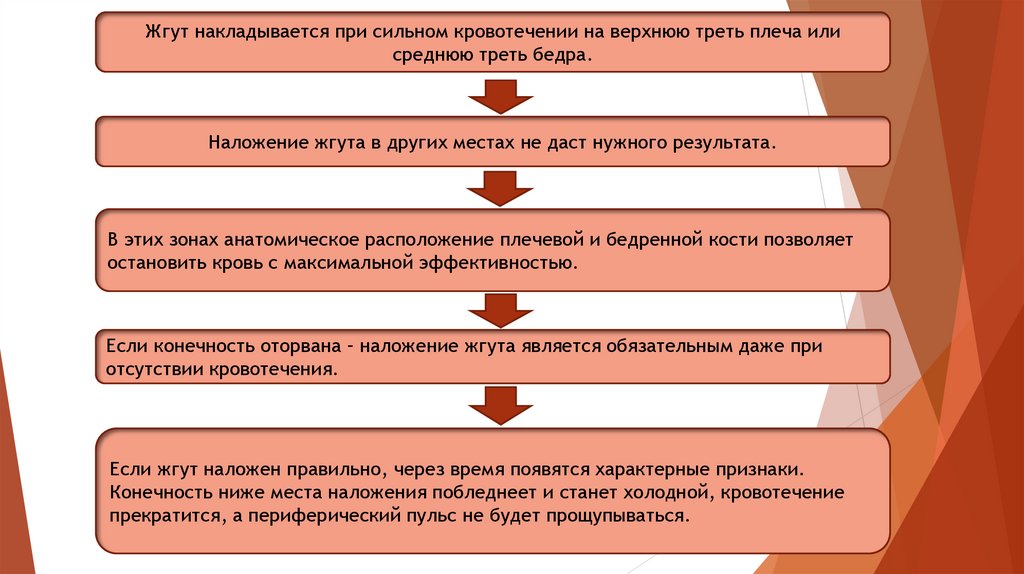 Наложение жгута в других местах не даст нужного результата.