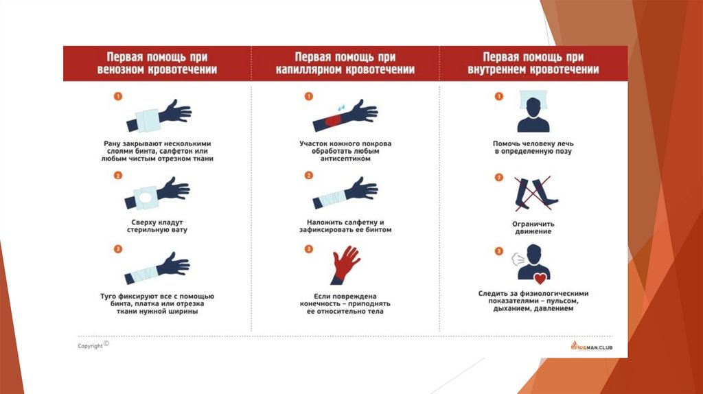 Меры оказания первой помощи зависят от вида кровотечения,