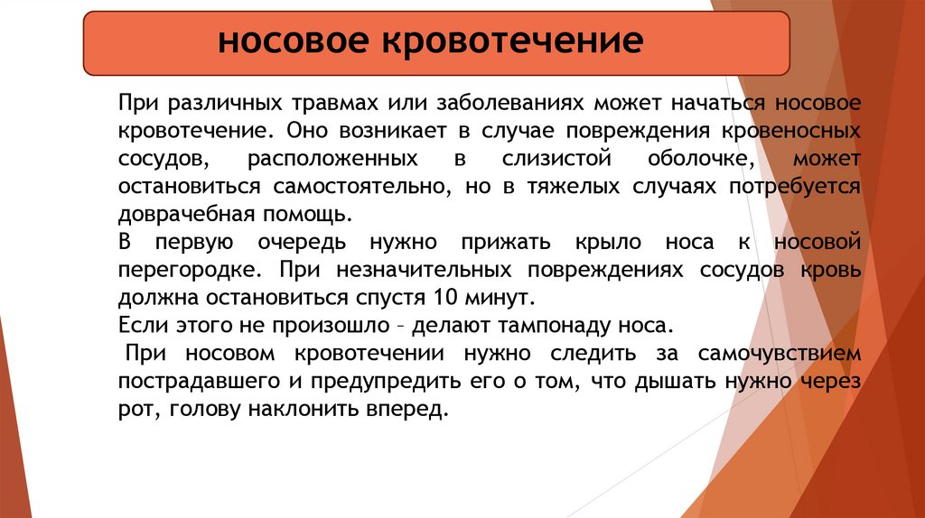 носовое кровотечениеПри различных травмах или заболеваниях может начаться носовое
