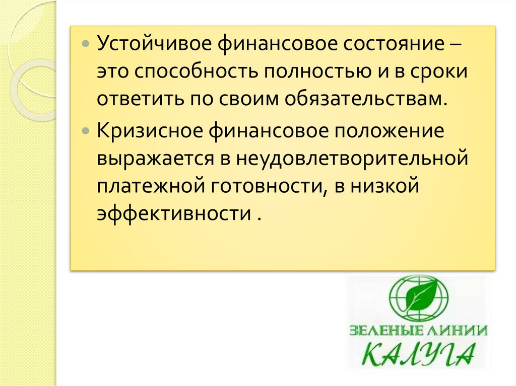 Анализ финансового состояния ООО «Зеленые линии-Калуга»