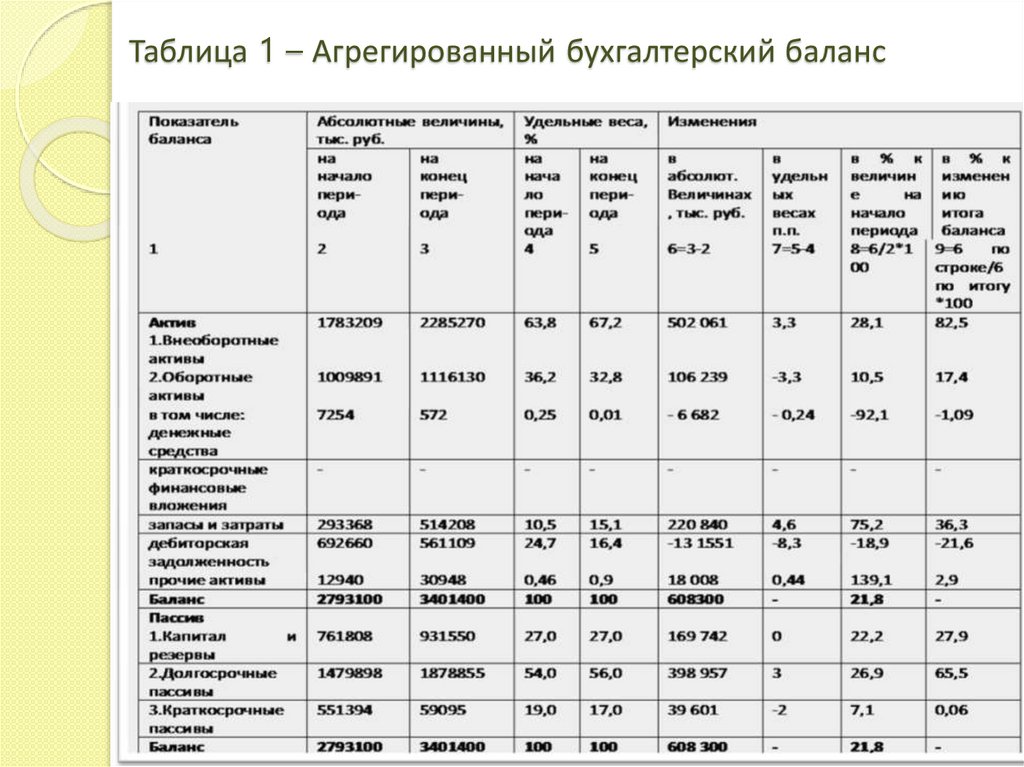 Таблица 1 – Агрегированный бухгалтерский баланс6.