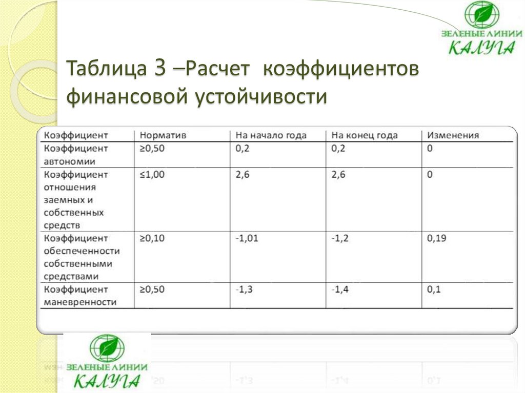 Таблица 3 –Расчет коэффициентовфинансовой устойчивости