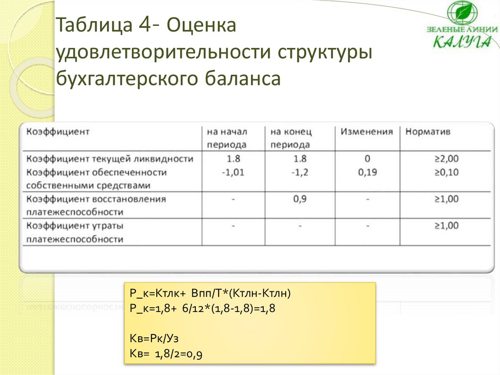 Анализ финансового состояния ООО«Зеленые линии-Калуга»