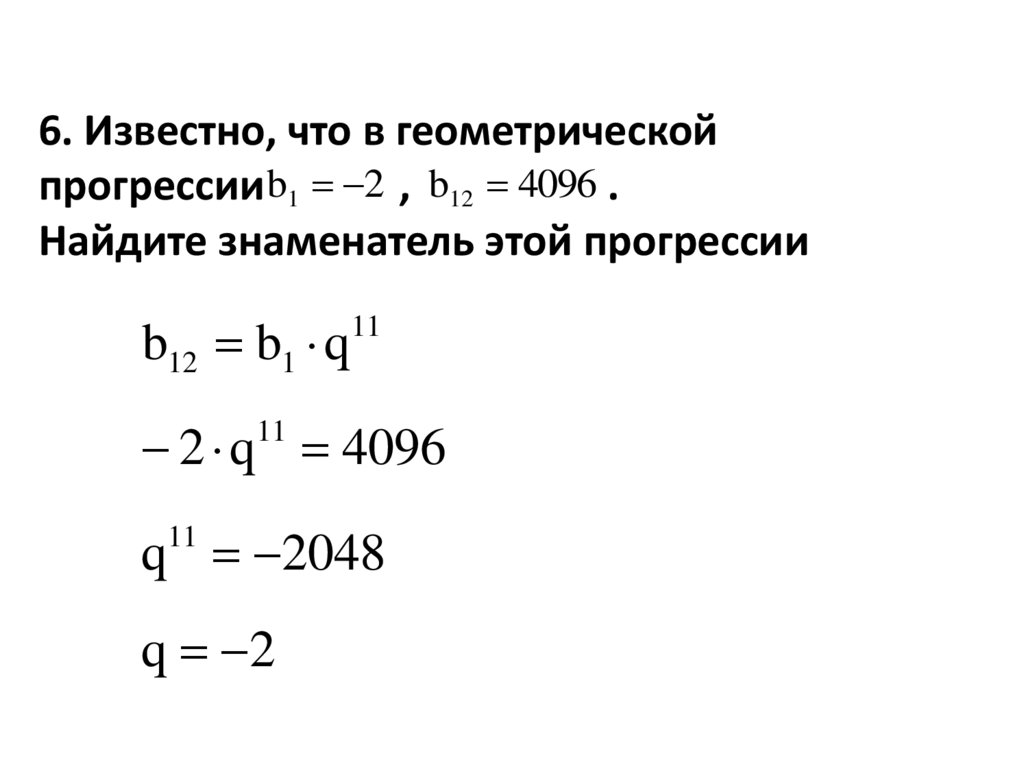 6. Известно, что в геометрическойпрогрессии b1 2 , b12 4096 .