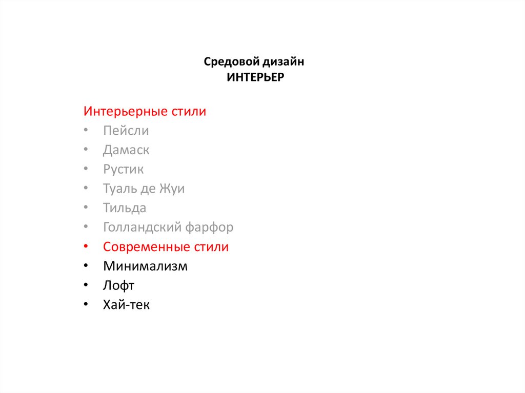 • Современные стили
