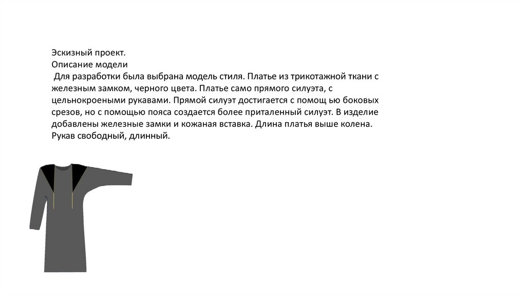 Для разработки была выбрана модель стиля. Платье из трикотажной ткани с