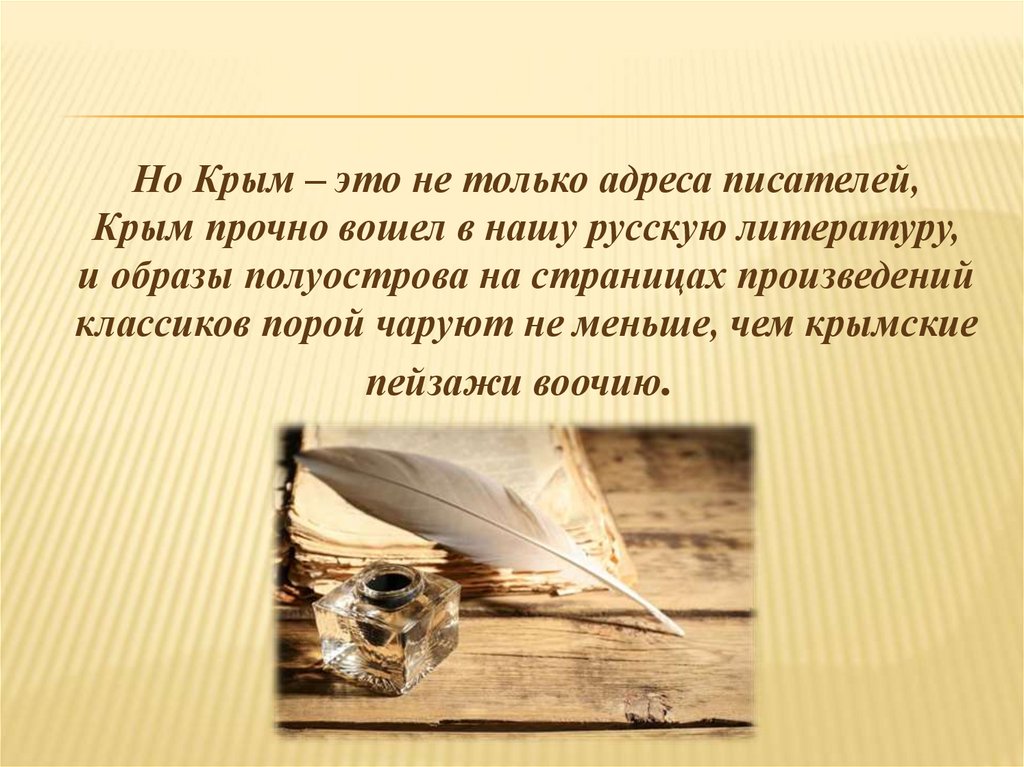Но Крым – это не только адреса писателей,Крым прочно вошел в нашу русскую литературу,