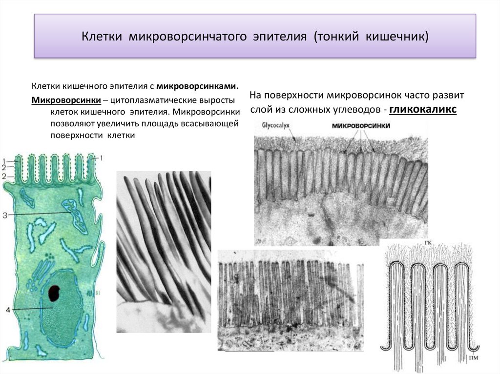 клеток кишечного эпителия. Микроворсинки слой из сложных углеводов - гликокаликс