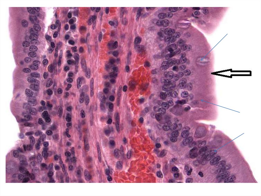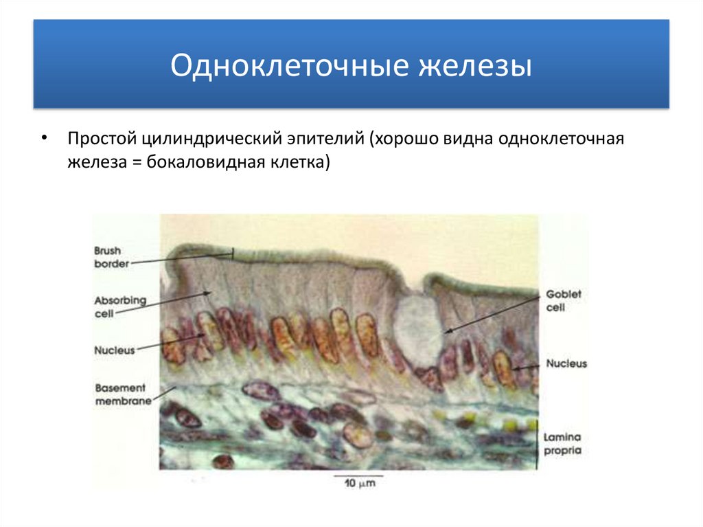 Одноклеточные железы• Простой цилиндрический эпителий (хорошо видна одноклеточная