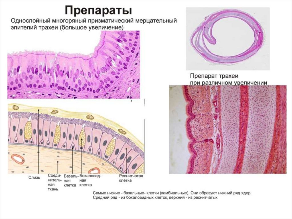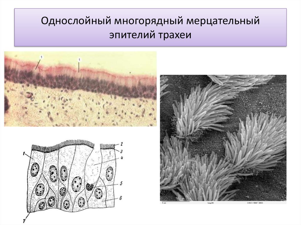 Однослойный многорядный мерцательныйэпителий трахеи