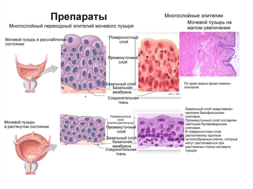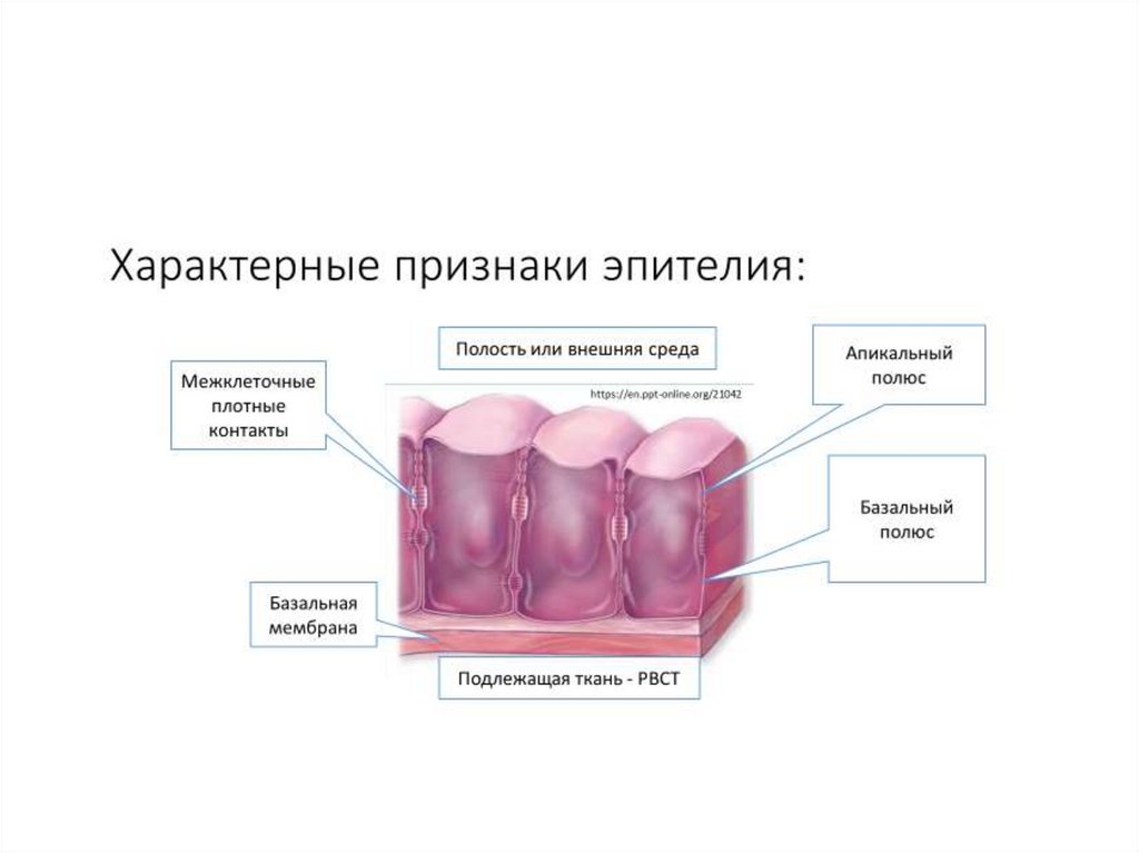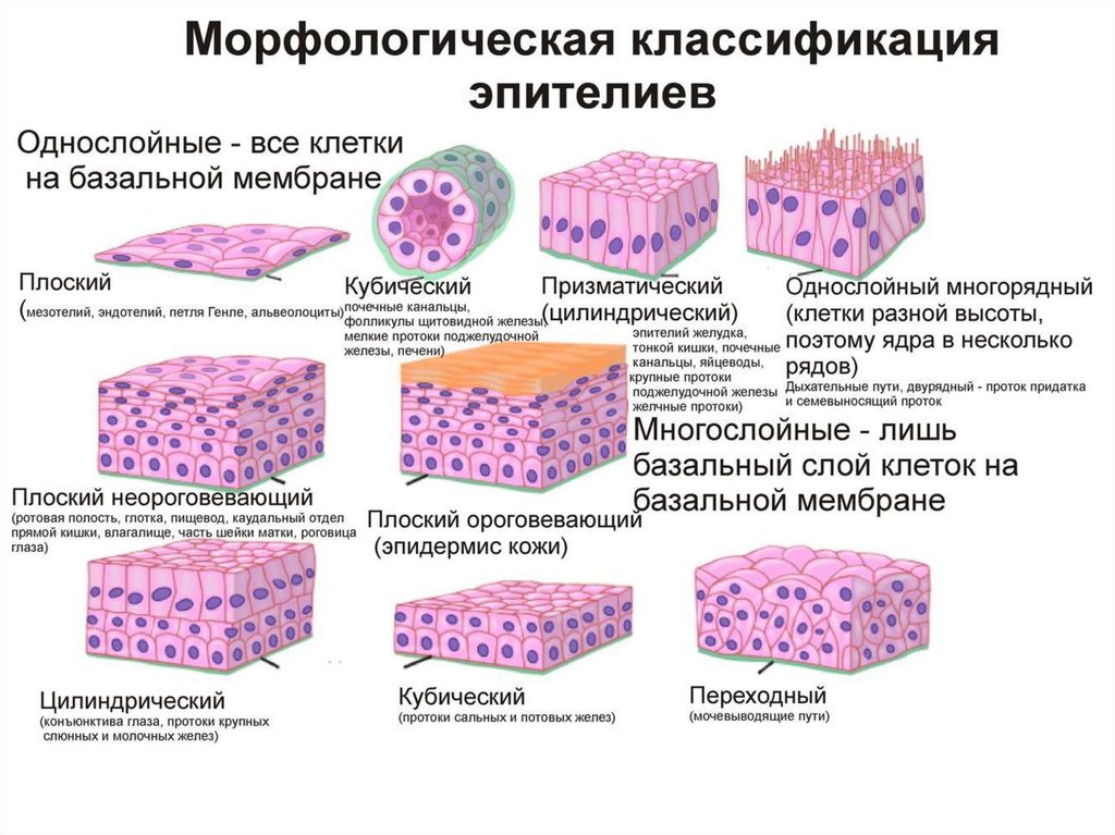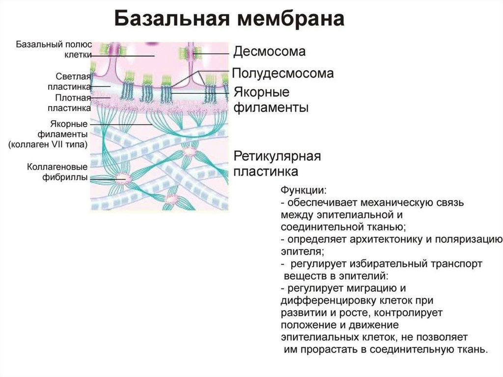 •Клетки лежат на базальной мембране,