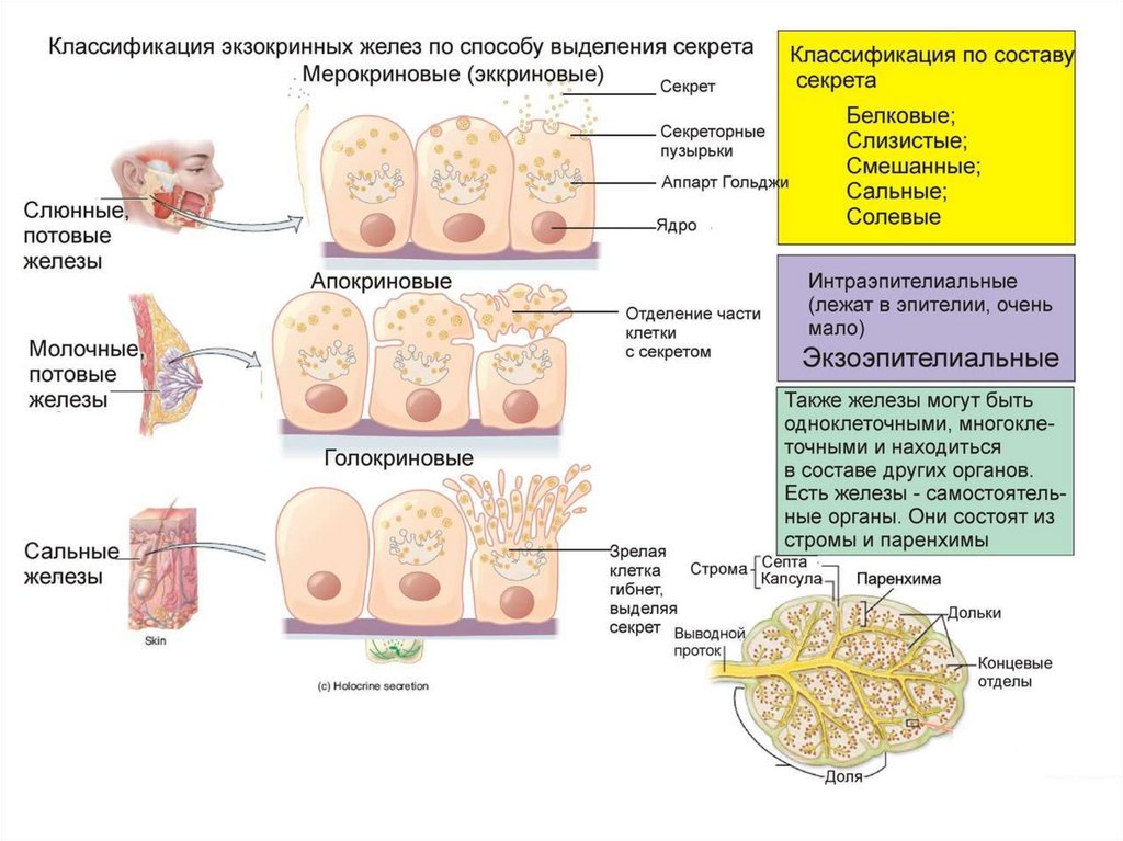 внешней секреции (слюнные железы, потовые, кишечные,