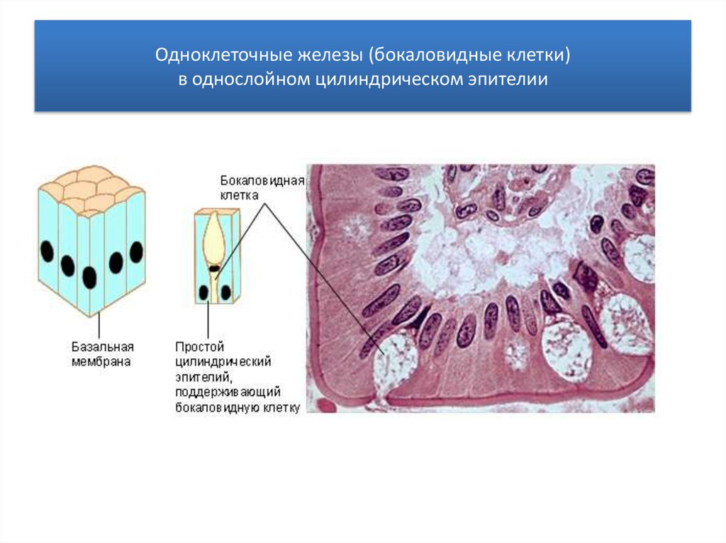 Одноклеточные железы (бокаловидные клетки)в однослойном цилиндрическом эпителии