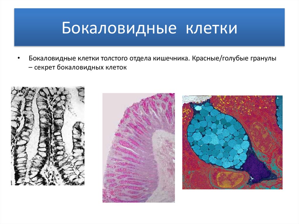 Бокаловидные клеткиБокаловидные клетки толстого отдела кишечника. Красные/голубые гранулы