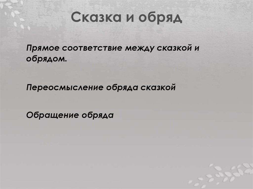 Сказка и обрядПрямое соответствие между сказкой и