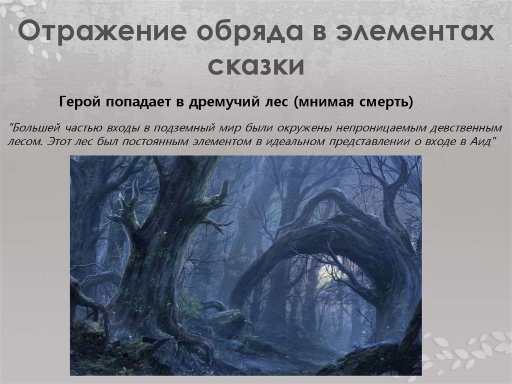 Герой попадает в дремучий лес (мнимая смерть)