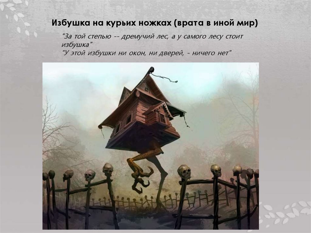 Избушка на курьих ножках (врата в иной мир)"За той степью -- дремучий лес, а у самого лесу стоит