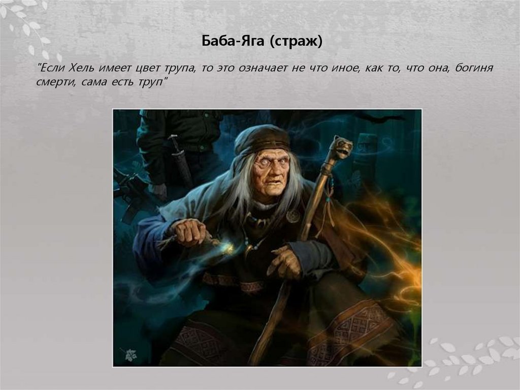 Баба-Яга (страж)"Если Хель имеет цвет трупа, то это означает не что иное, как то, что она, богиня
