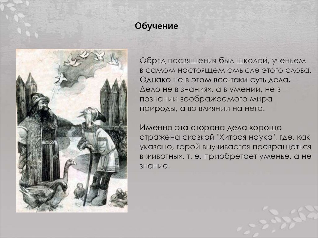 ОбучениеОбряд посвящения был школой, ученьем