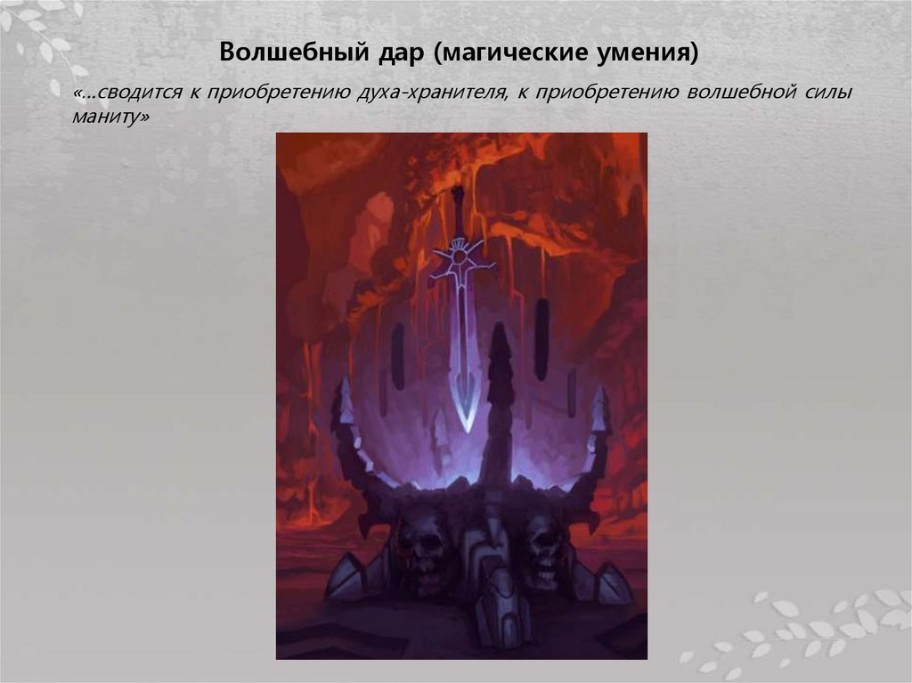 Волшебный дар (магические умения)«…сводится к приобретению духа-хранителя, к приобретению волшебной силы