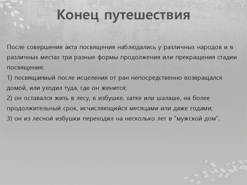 Конец путешествияПосле совершения акта посвящения наблюдались у различных народов и в