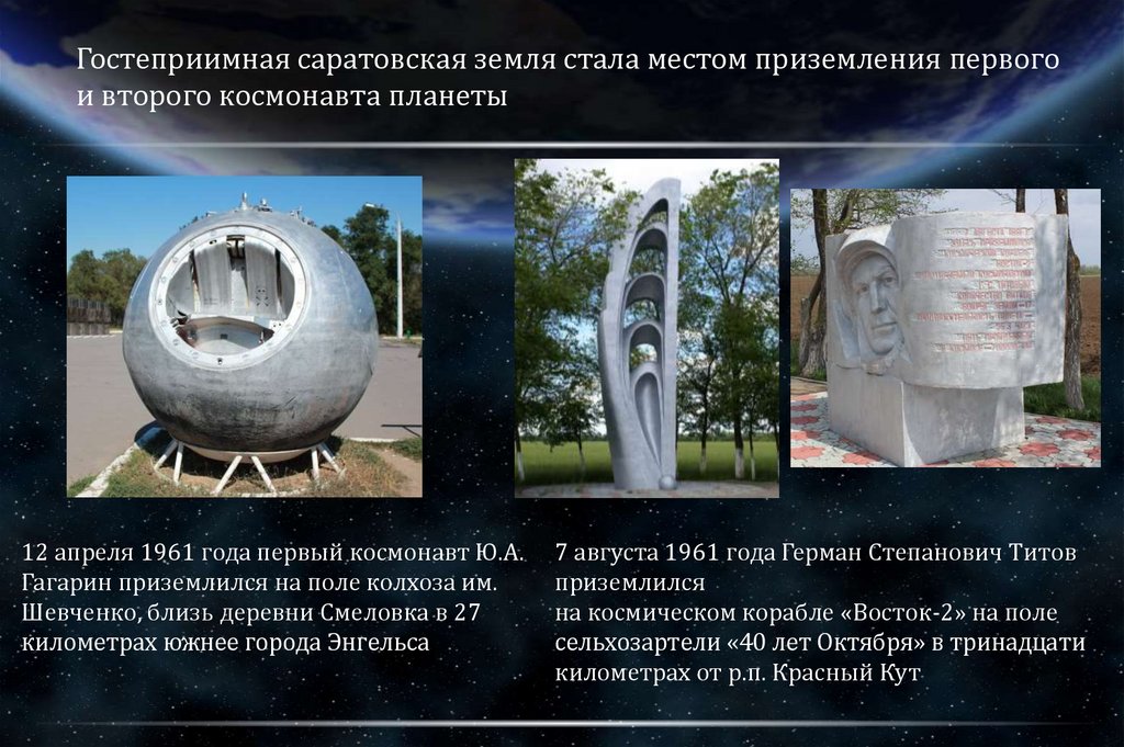 Гостеприимная саратовская земля стала местом приземления первогои второго космонавта планеты