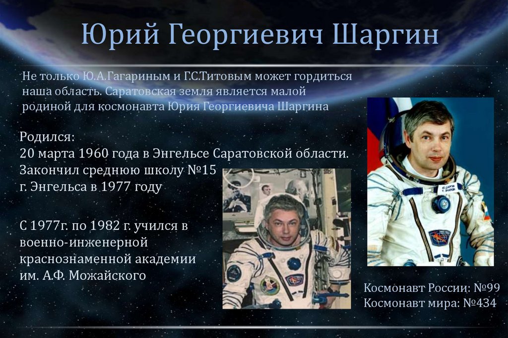родиной для космонавта Юрия Георгиевича Шаргина