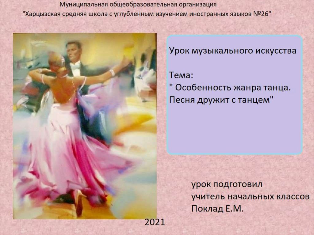 Особенность жанра танца. Песня дружит с танцем. 1 класс