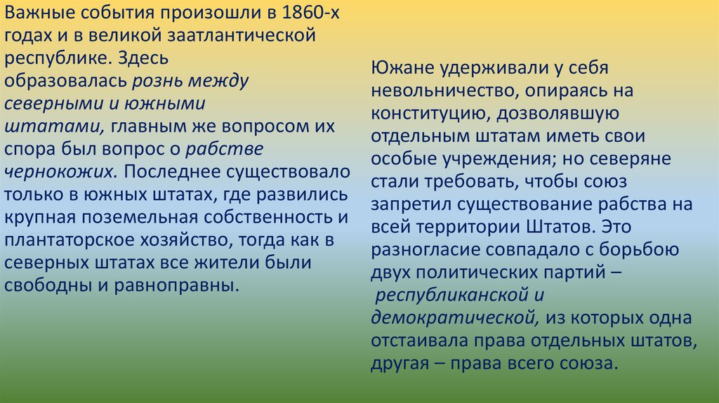 Важные события произошли в 1860-хгодах и в великой заатлантической