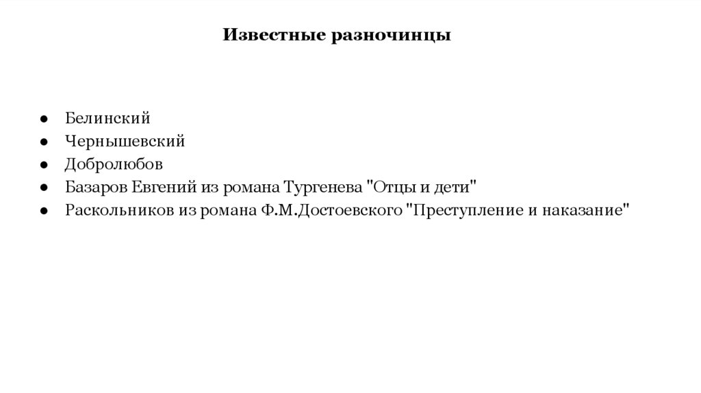 идей назывались писателями-разночинцами. К политическим их представителям относили