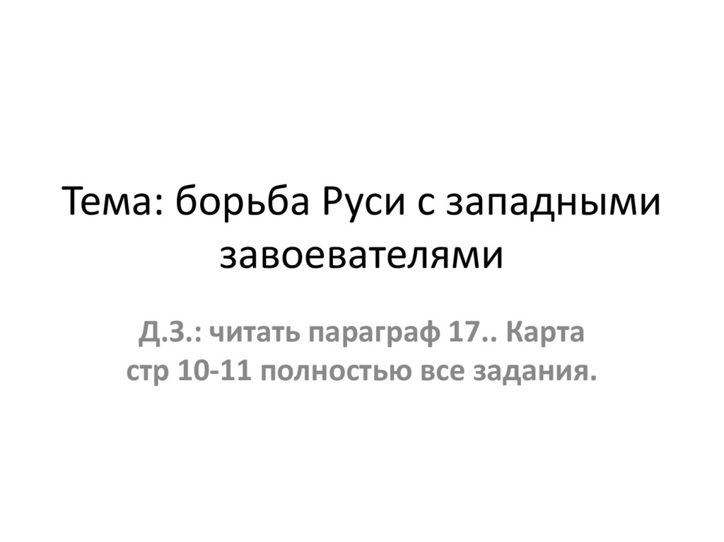 Тема: борьба Руси с западнымизавоевателями