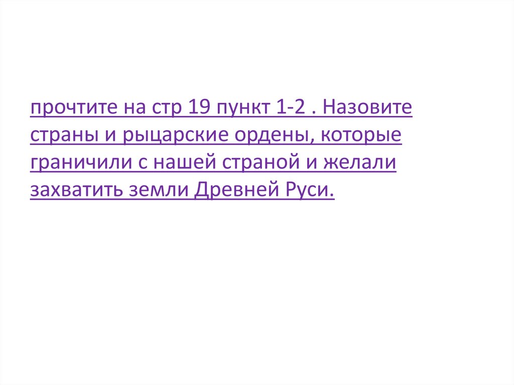 прочтите на стр 19 пункт 1-2 . Назовитестраны и рыцарские ордены, которые