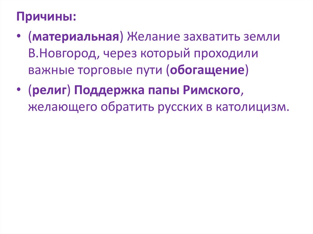 Причины:• (материальная) Желание захватить земли