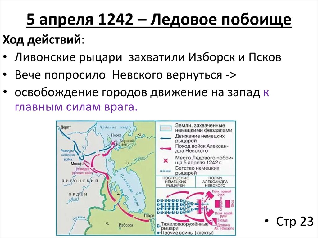 5 апреля 1242 – Ледовое побоищеХод действий: