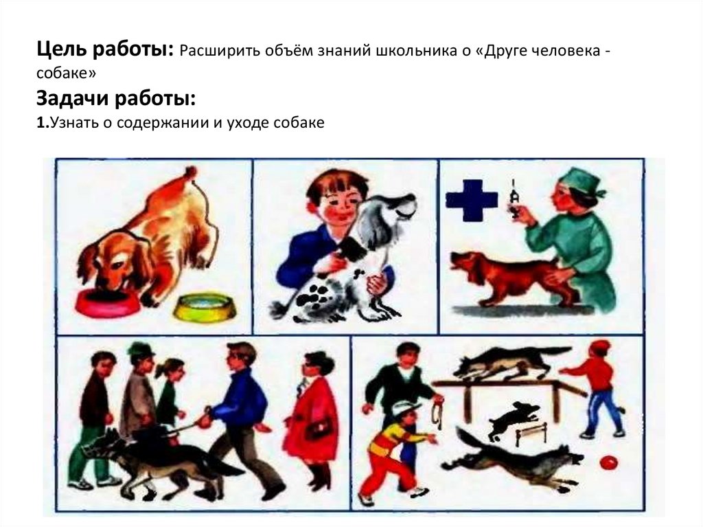 Цель работы: Расширить объём знаний школьника о «Друге человека собаке»Задачи работы:
