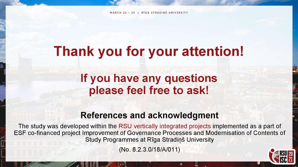 The study was developed within the RSU vertically integrated projects implemented as a part of