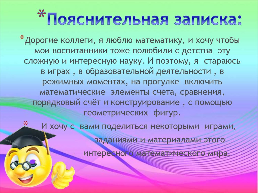 *Дорогие коллеги, я люблю математику, и хочу чтобымои воспитанники тоже полюбили с детства эту