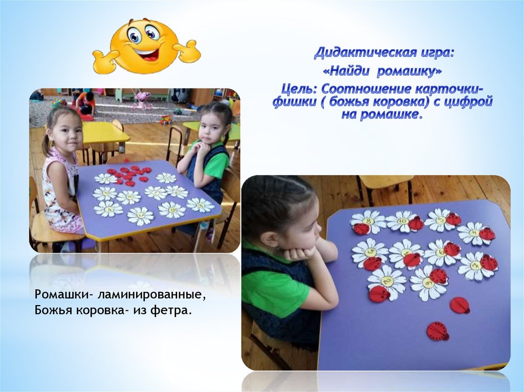 Ромашки- ламинированные,Божья коровка- из фетра.
