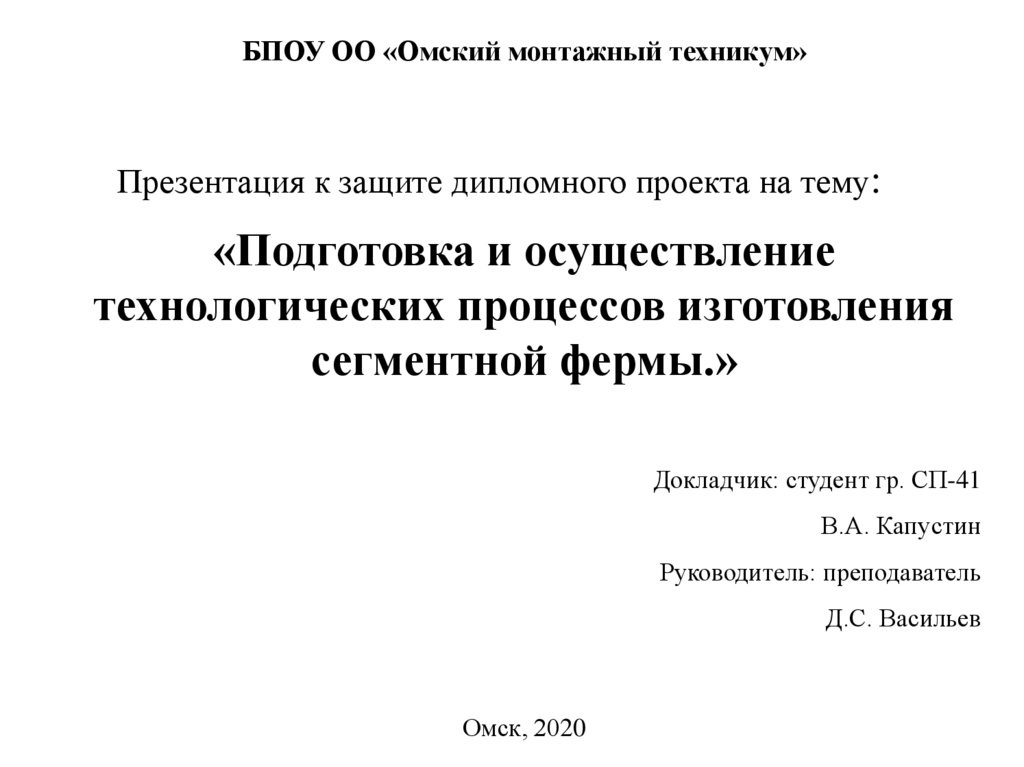 Подготовка и осуществление технологических процессов изготовления сегментной фермы