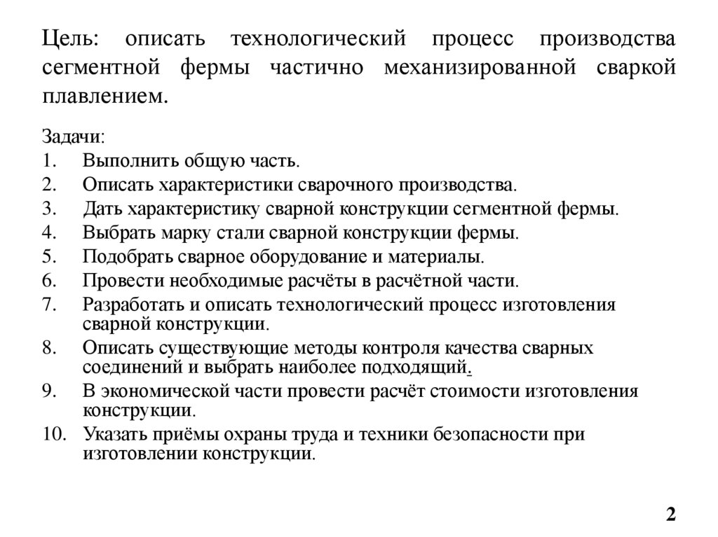 Цель: описать технологический процесс производствасегментной фермы частично механизированной сваркой