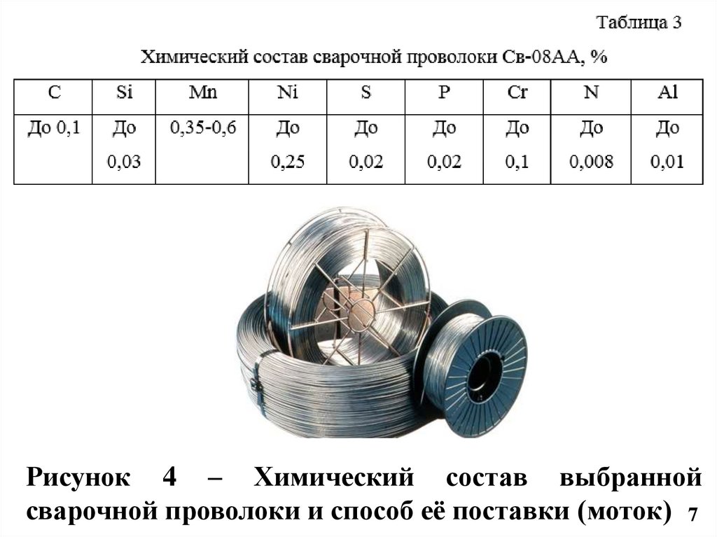 Рисунок 4 – Химический состав выбраннойсварочной проволоки и способ её поставки (моток) 7