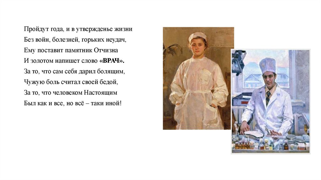 И золотом напишет слово «ВРАЧ».