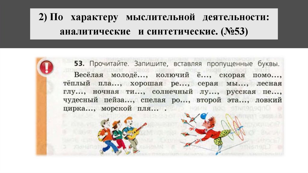 2) По характеру мыслительной деятельности:аналитические и синтетические. (№53)