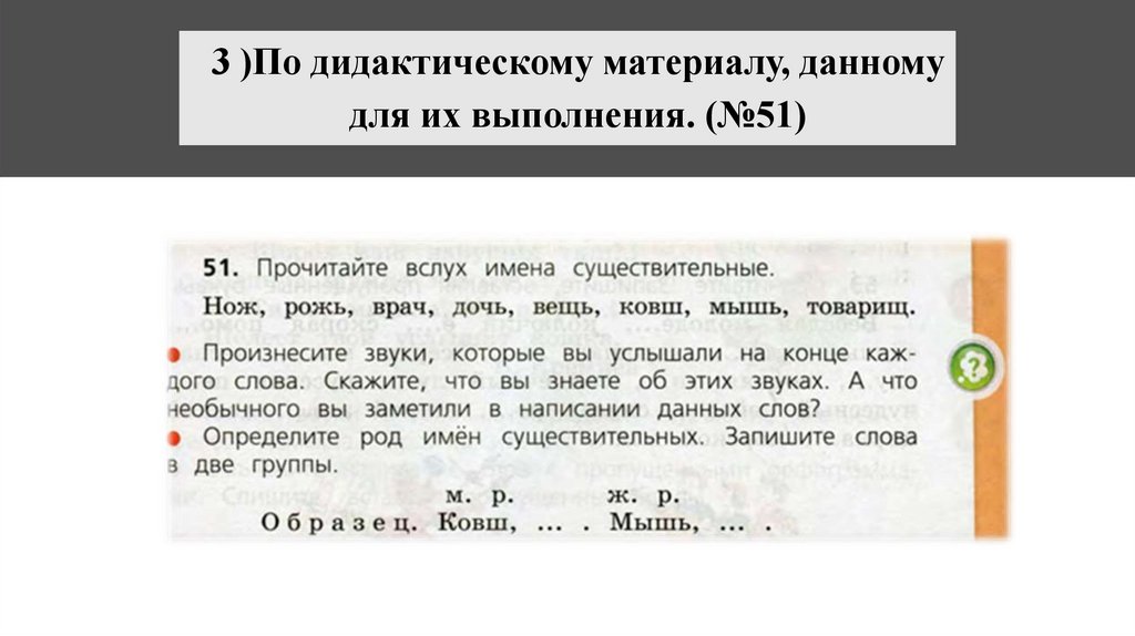 3 )По дидактическому материалу, данномудля их выполнения. (№51)
